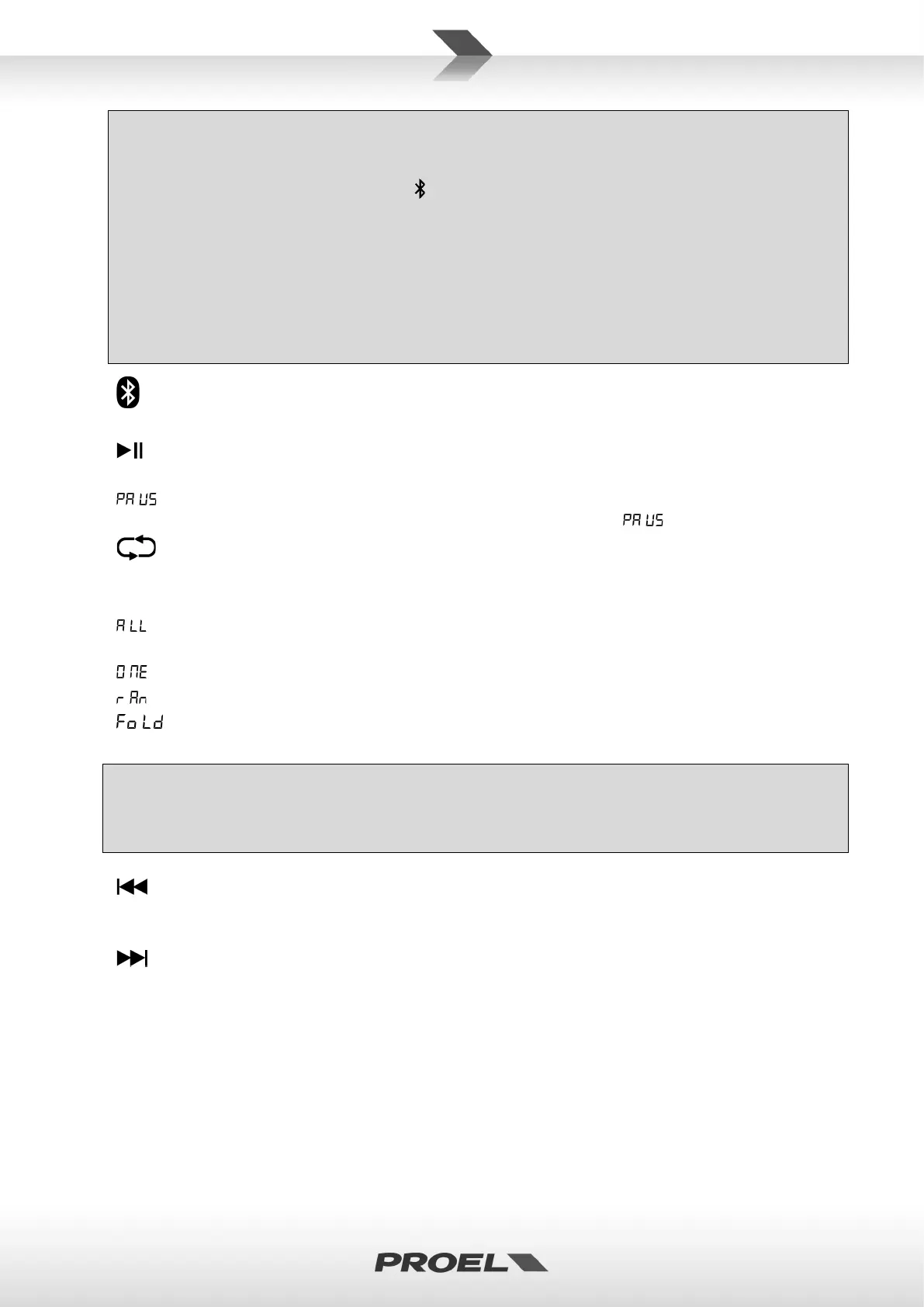 appears on display when the song is paused. Pressing again the button the song is resumed from