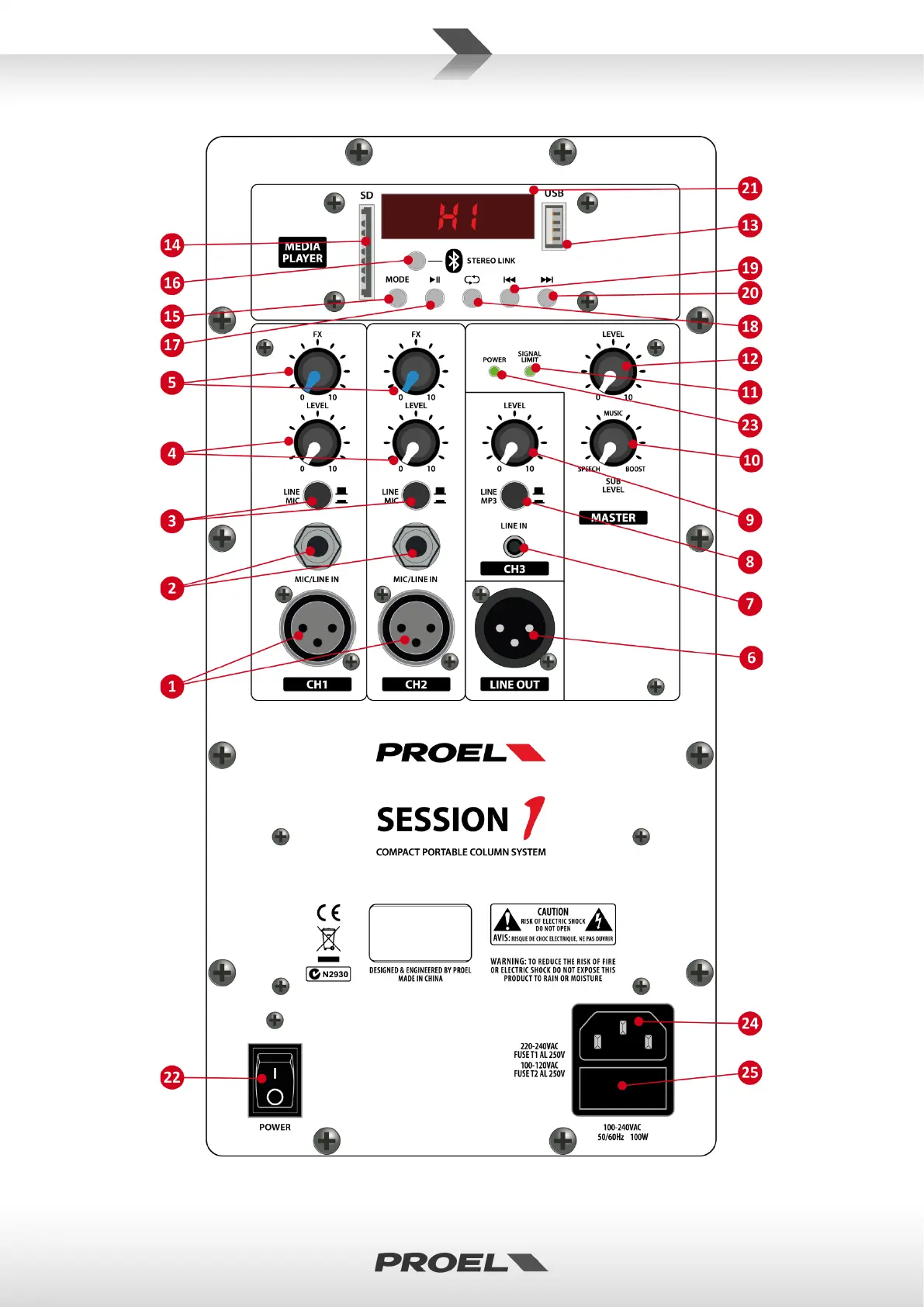 Bekijk gratis de handleiding van Proel Session1, stel vragen en lees de antwoorden op veelvoorkomende problemen, of gebruik onze assistent om sneller informatie in de handleiding te vinden of uitleg te krijgen over specifieke functies.