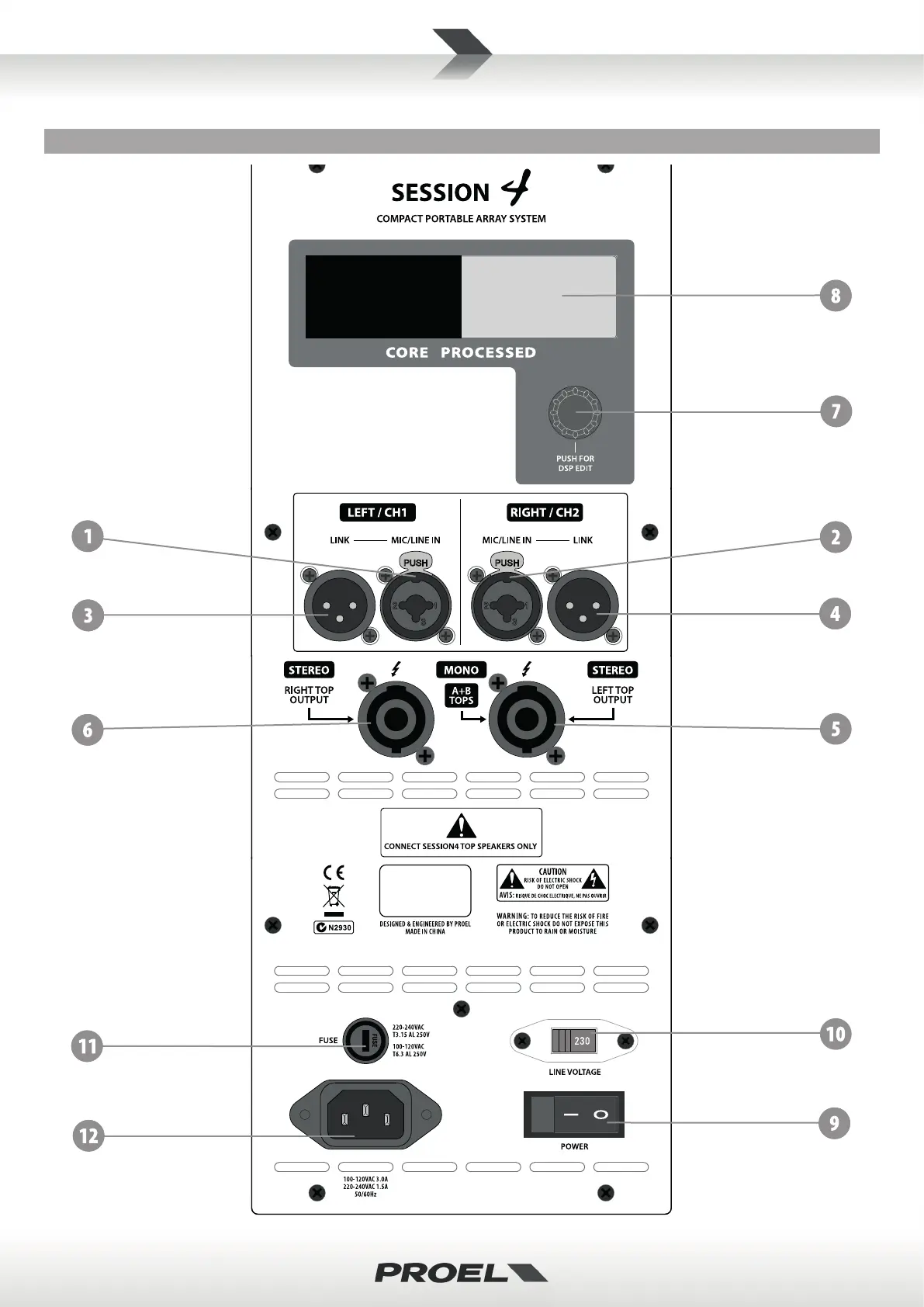 Bekijk gratis de handleiding van Proel Session4, stel vragen en lees de antwoorden op veelvoorkomende problemen, of gebruik onze assistent om sneller informatie in de handleiding te vinden of uitleg te krijgen over specifieke functies.
