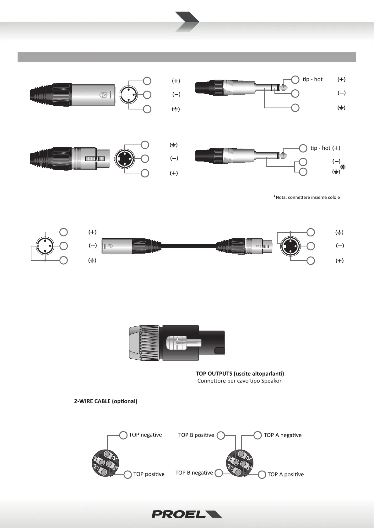 *nota: per un miglior cablaggio microfono, si consiglia di collegare lo schermo GND sia al pin 1 che all’involucro del