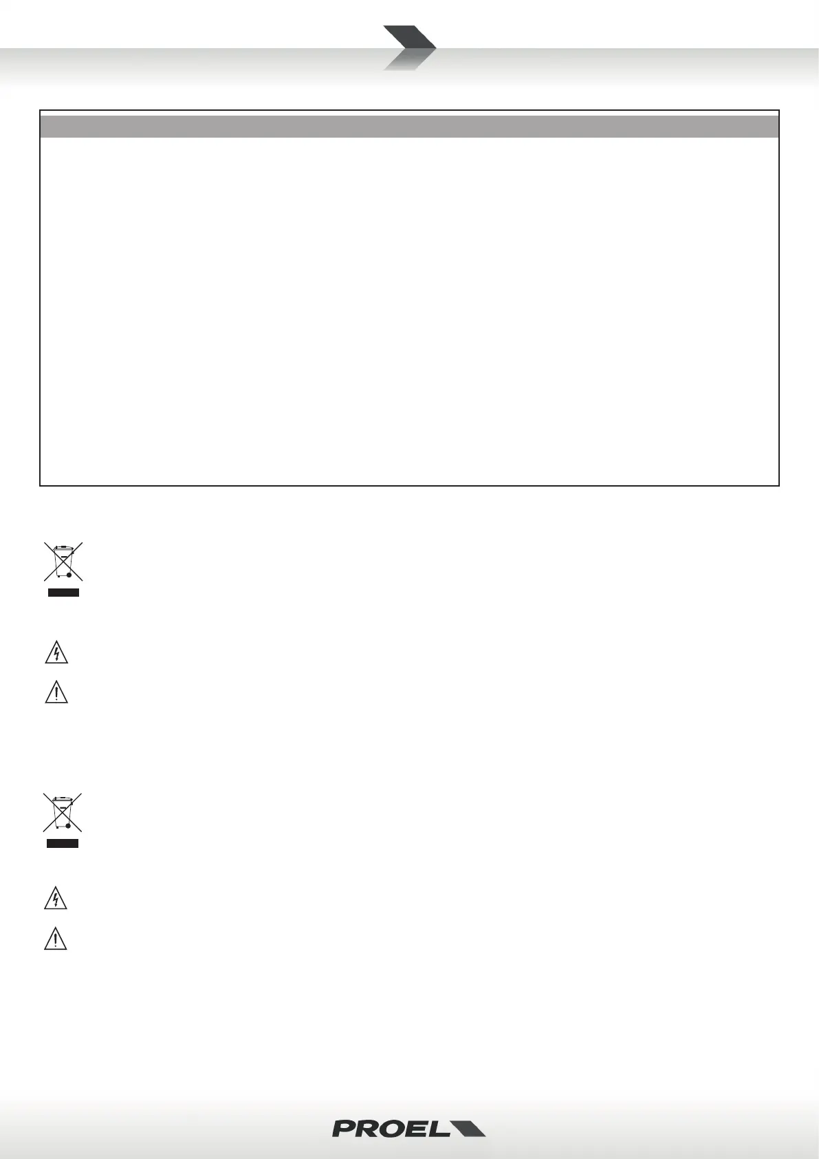 previo consenso scrio della PROEL. PROEL si riserva il dirio di apportare senza preavviso cambiamen e modiche esteche, funzionali o di