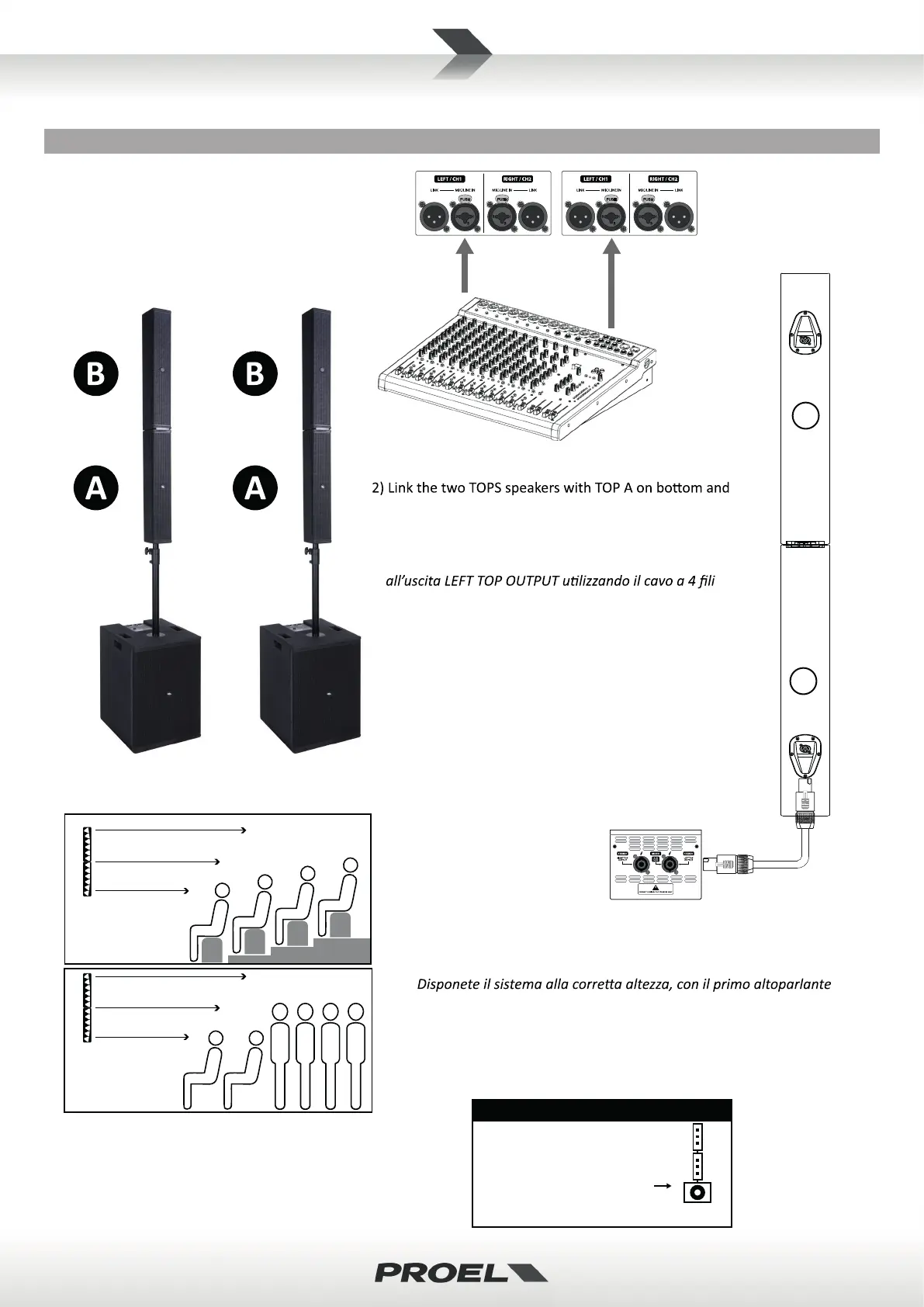 3) Arrange the system at the correct height, with the TOP’s lower speaker