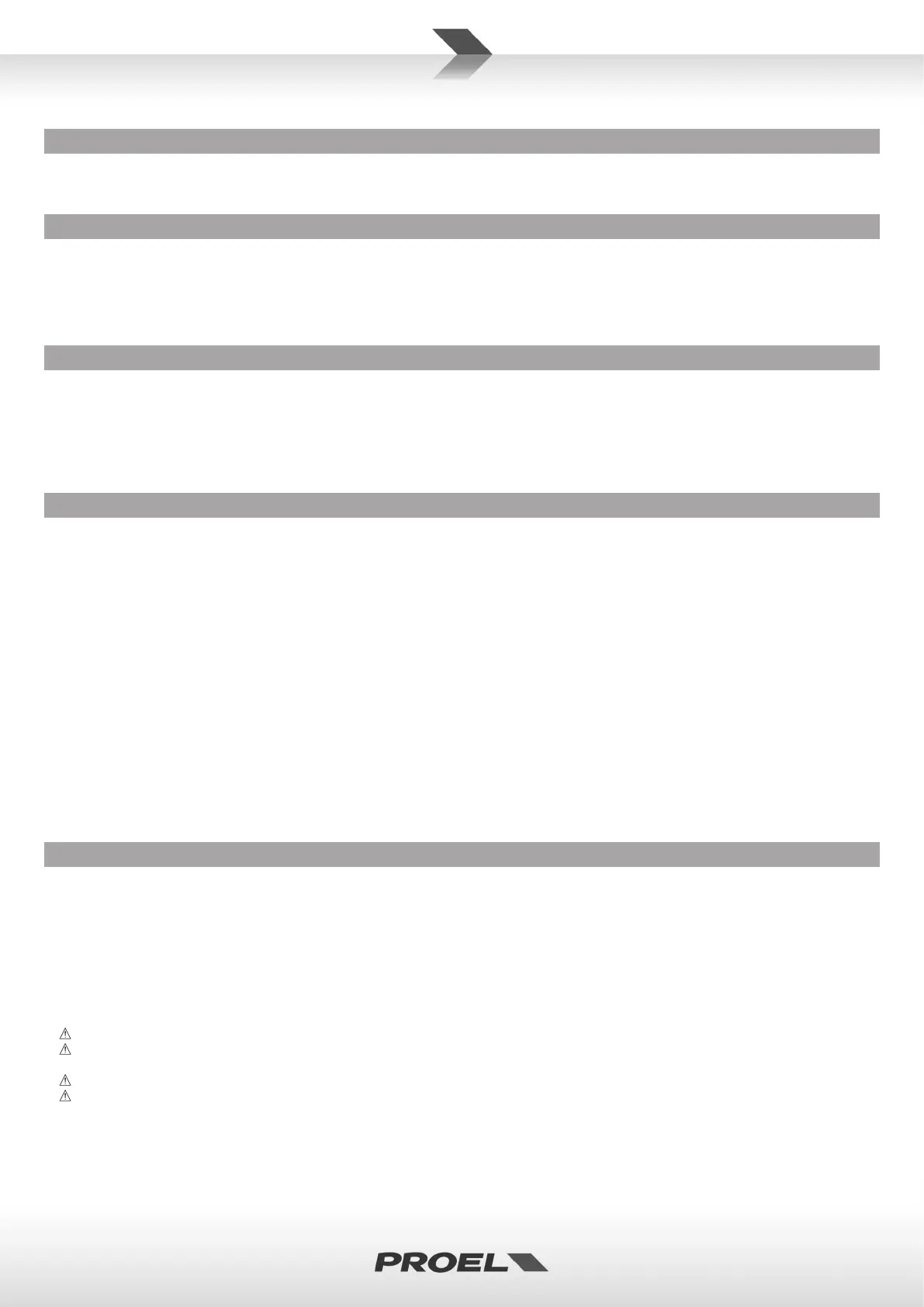 • Proel S.p.A. declines any liability for damages to objects or persons caused by lacks of maintenance, improper use, installaon not performed