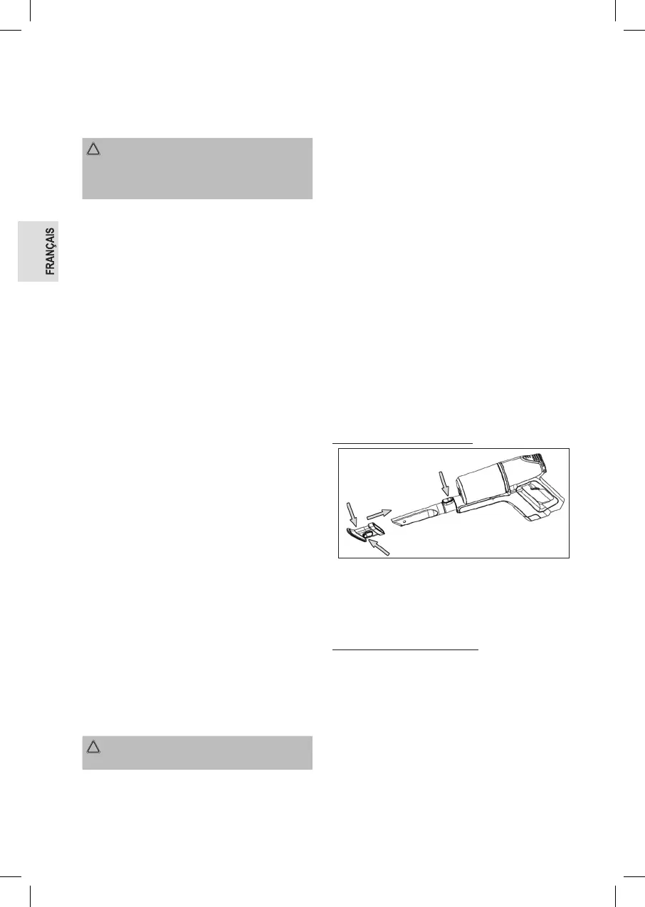 • Cet aspirateur à batterie rechargeable ne peut pas rem-