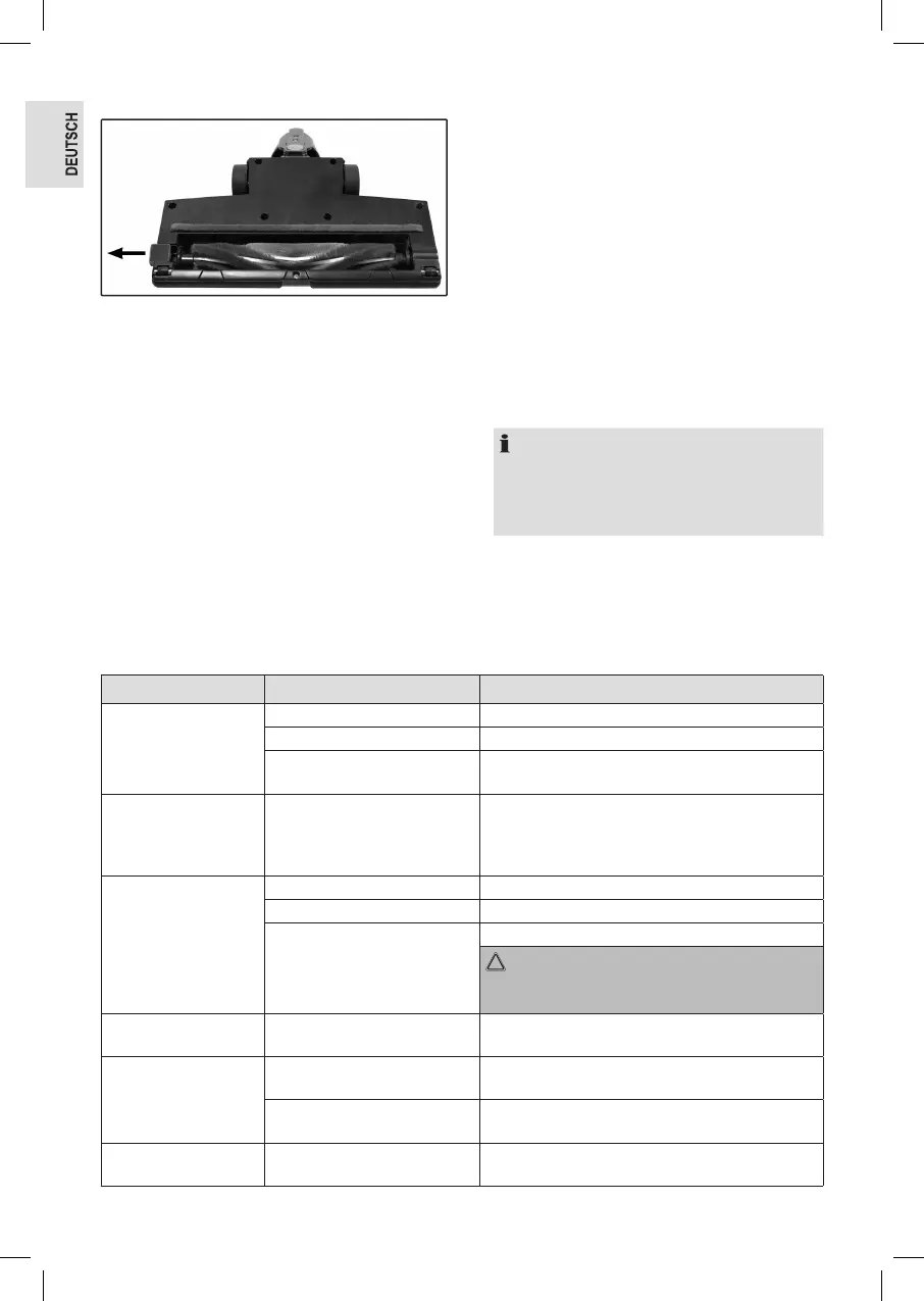 Reinigen Sie die Bodendüse wie unter „Reinigung“