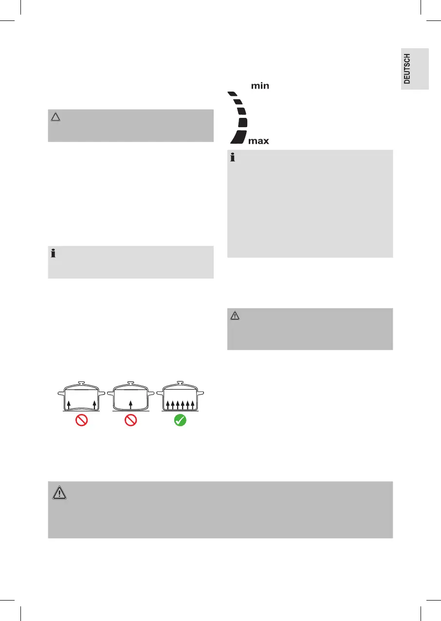 • Verwenden Sie nur Kochtöpfe / Pfannen mit ebenem