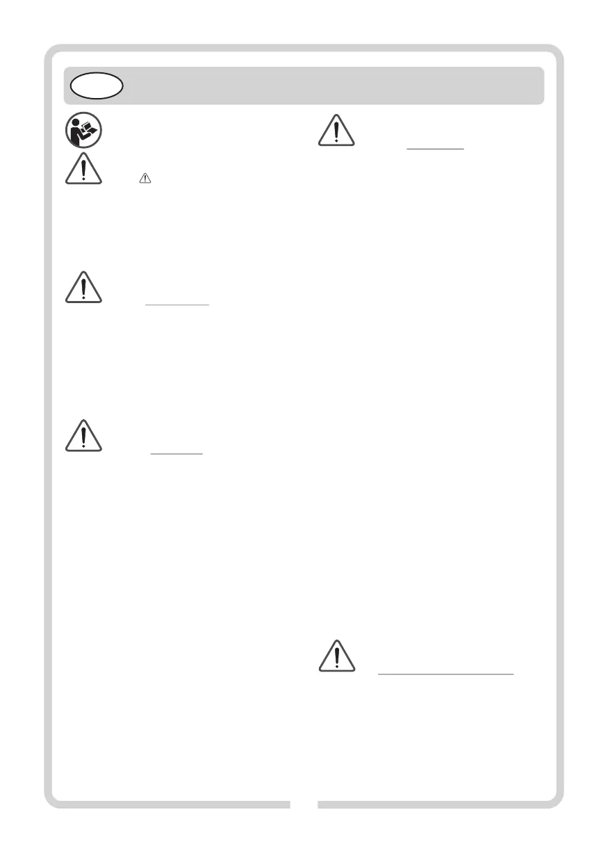 BEFORE YOU START USING THE MACHINE READ WARNING! General warnings regarding the use of