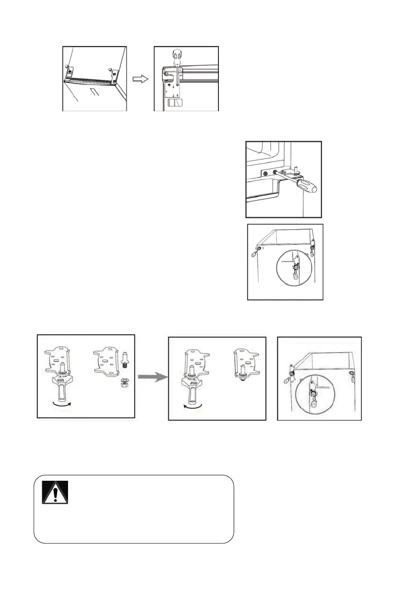 6. Dévissez le gond de la charnière inférieure. Retournez la charnière inférieure et réassemblez le gond