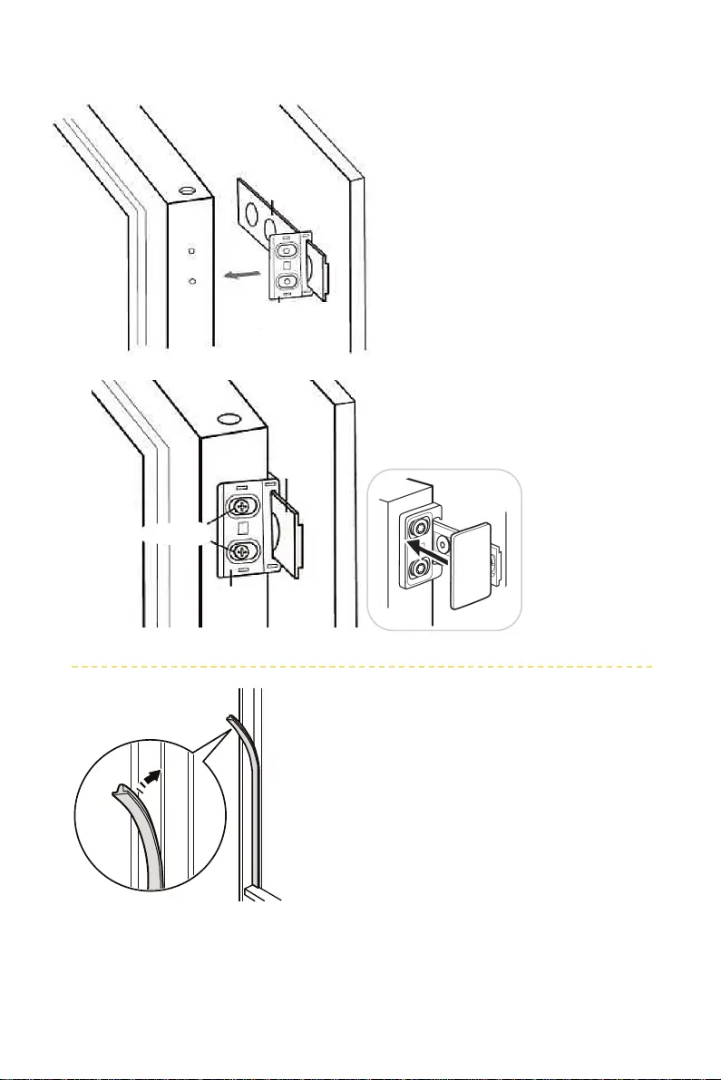 op de kant van de koelkast zonder scharnieren.