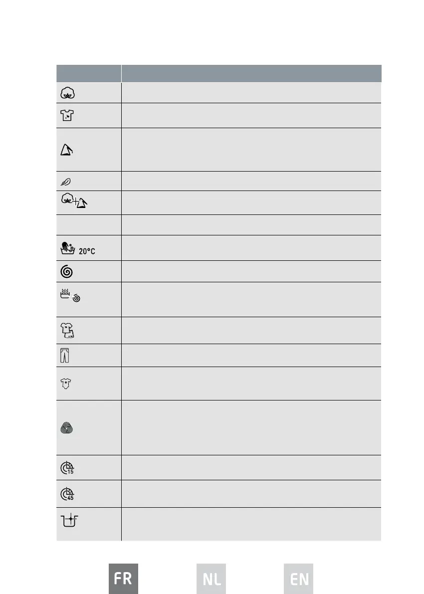 ECO 40-60 Par défaut 40°C, non sélectionnable, pour le linge lavé à 40°C – 60°C.