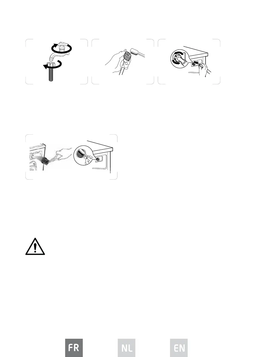 Réinstallez le ltre sur l’arrivée d’eau et rebranchez le tuyau d’arrivée