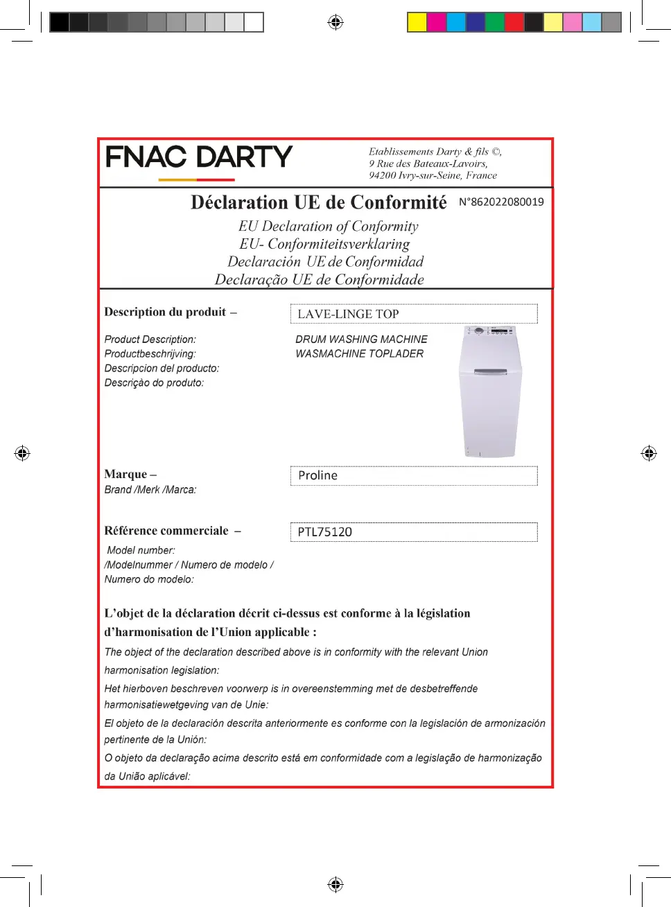 Bekijk gratis de handleiding van Proline PTL75120, stel vragen en lees de antwoorden op veelvoorkomende problemen, of gebruik onze assistent om sneller informatie in de handleiding te vinden of uitleg te krijgen over specifieke functies.