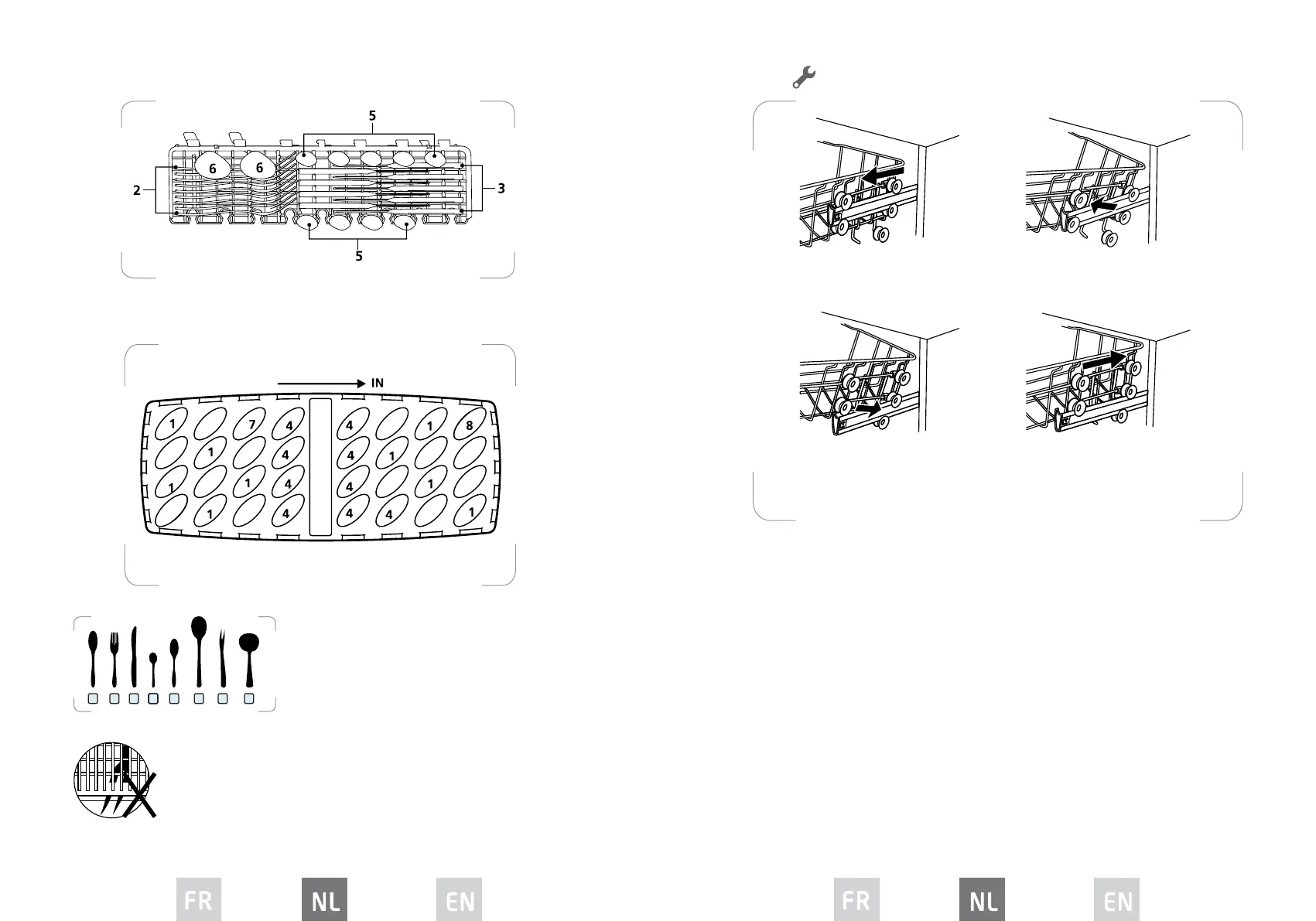 de bovenste of onderste wieltjes.