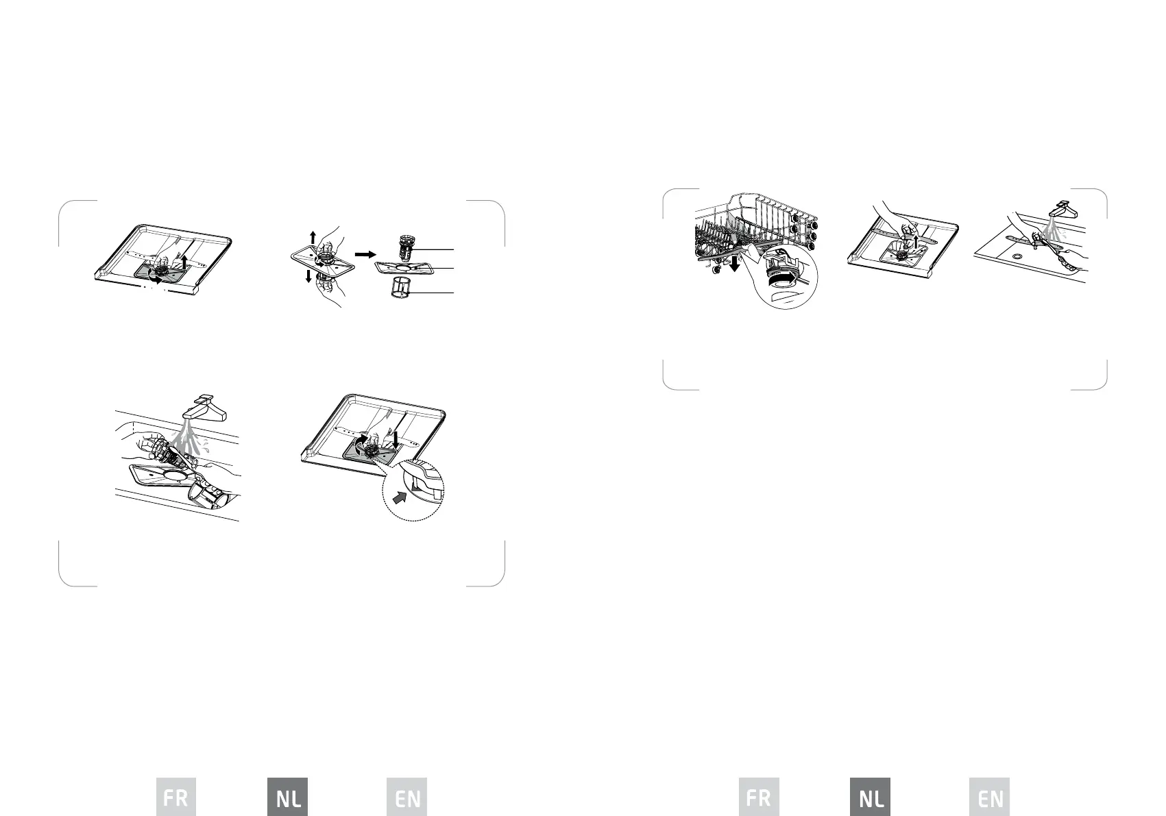 Om de sproeiarmen te reinigen, volg onderstaande instructies: