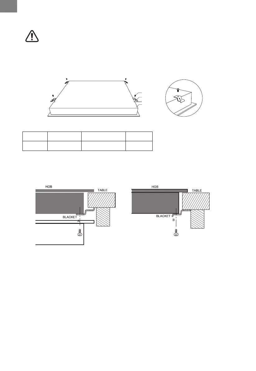 Fixthehobtotheworktopusing4bracketsonthebaseofthehob.