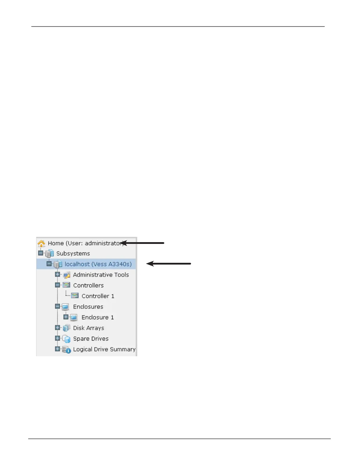 Tree View enables you to navigate around all components of the Vess enclosure, software management, RAID