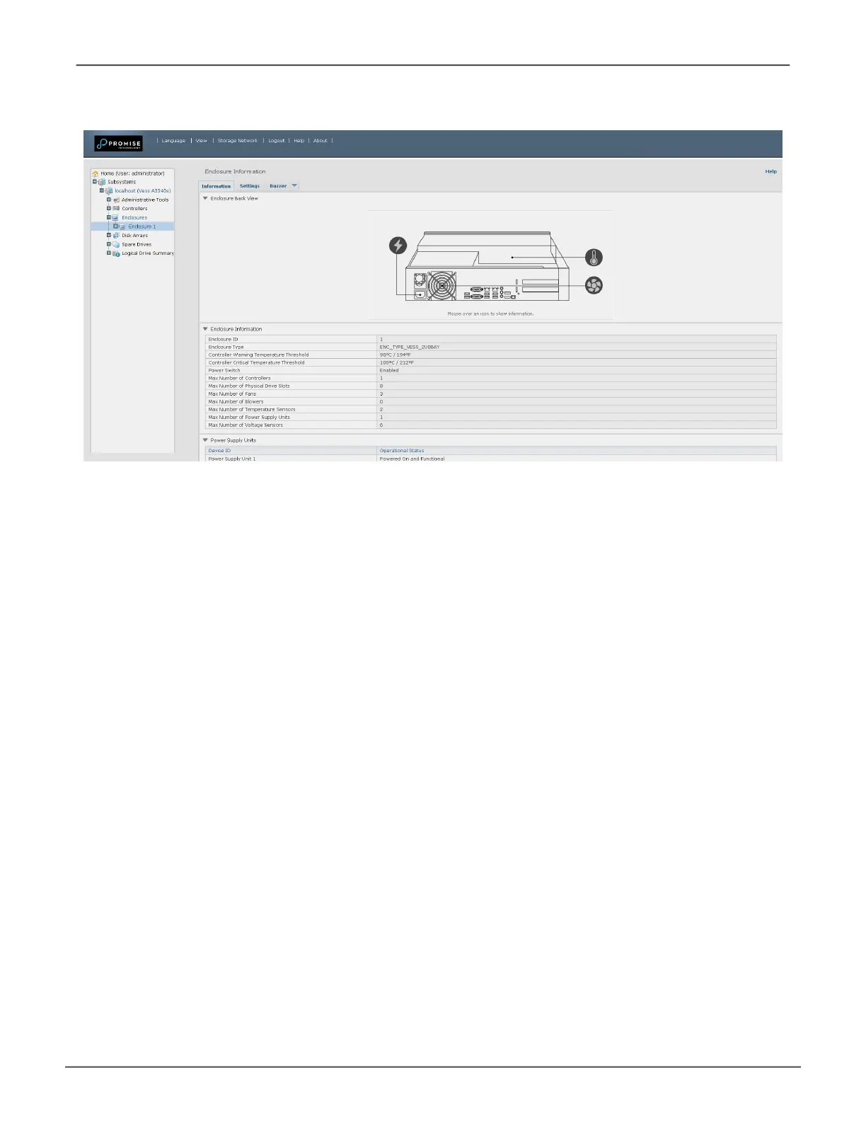 Settings tab to view the Enclosure Settings menu. There are two thresholds to congure: