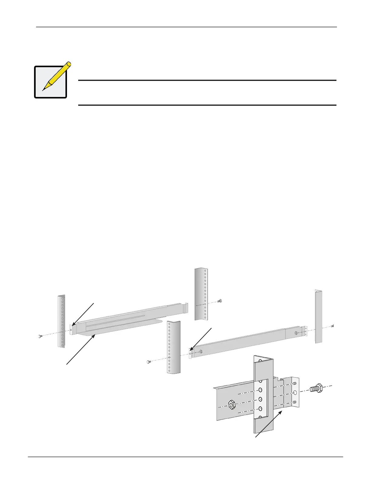 • All rail ends, front and rear, attach at the outside of the rack posts.