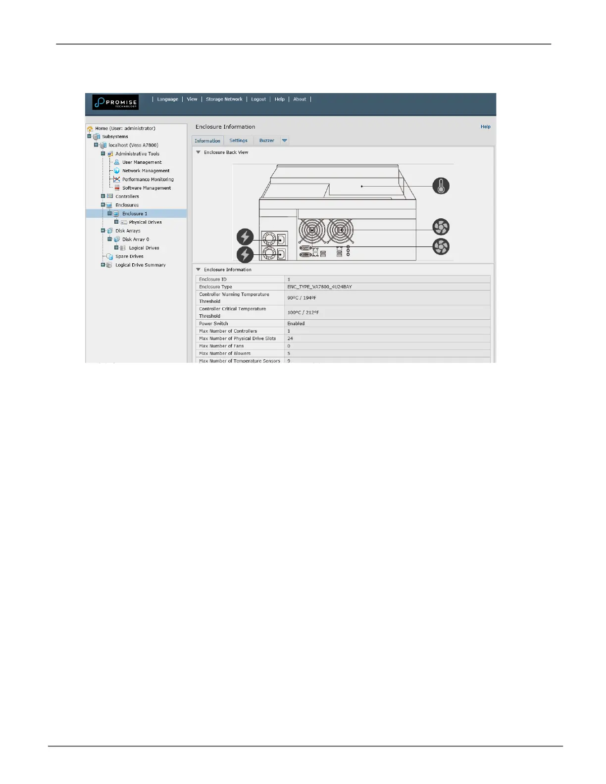 a high level. To set enclosure temperature thresholds, click on the enclosure in Tree View, then click on the