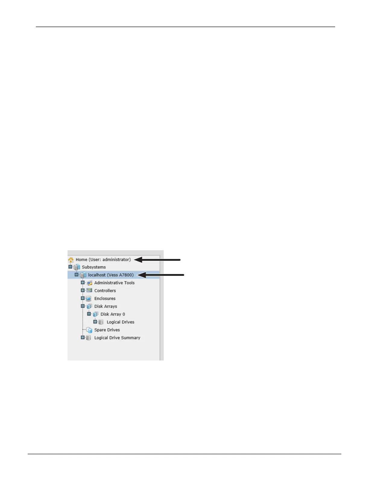 Tree View enables you to navigate around all components of the Vess A7000 enclosure, software management,