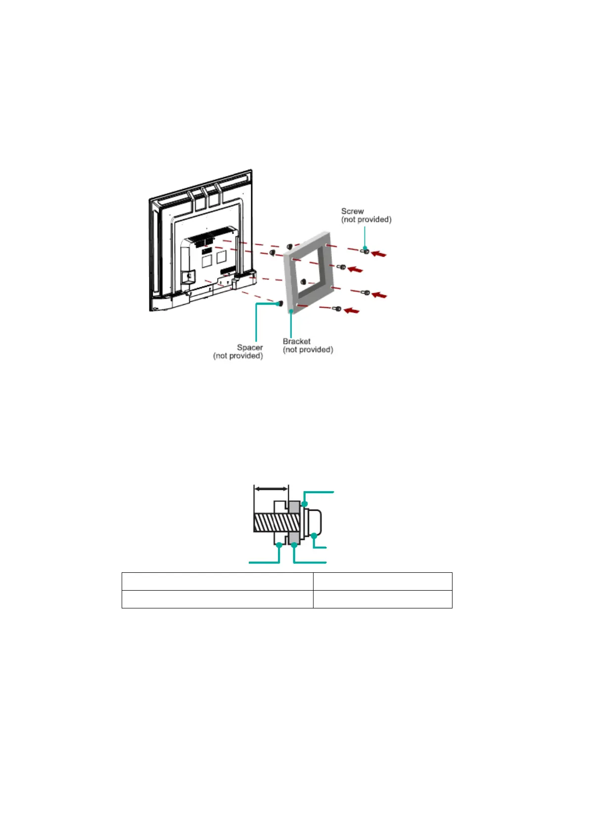 screws (not provided) that are 10 mm in length when measured from the attaching surface of