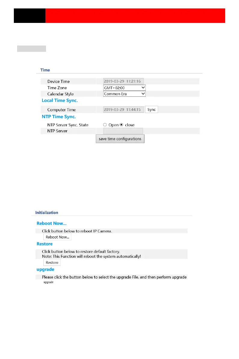 with an NTP server (Internet connection required) or synchronize the camera time with the