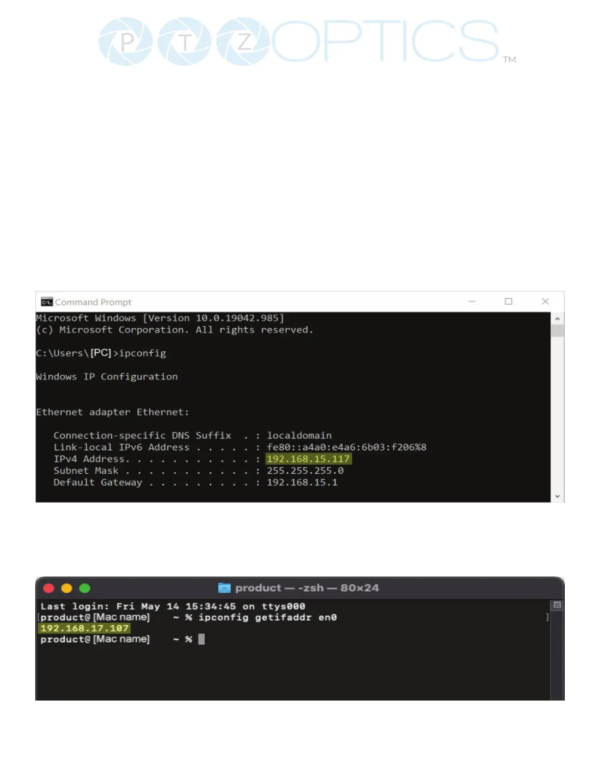 5. In the example above, the PC’s local address is “192.168.15.117”, making the network range