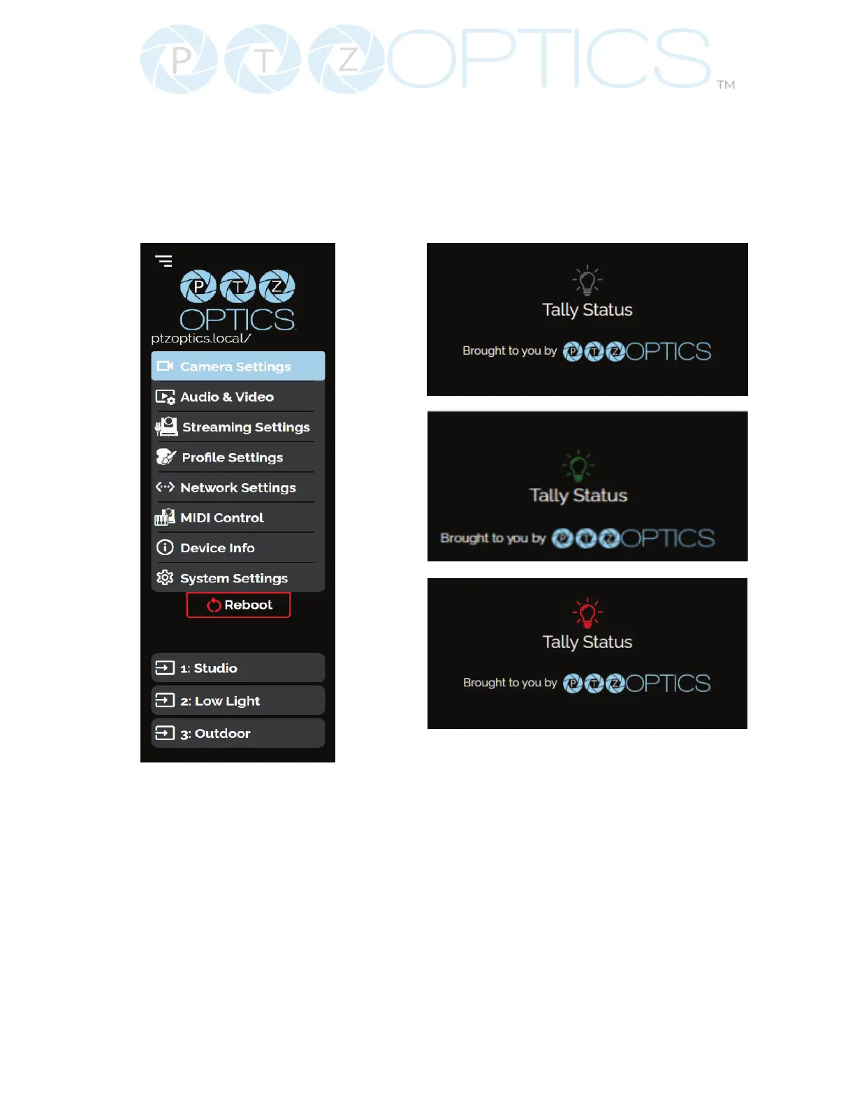 • Tally Status: The Tally Status icon will mirror the tally light built into the camera as an easy