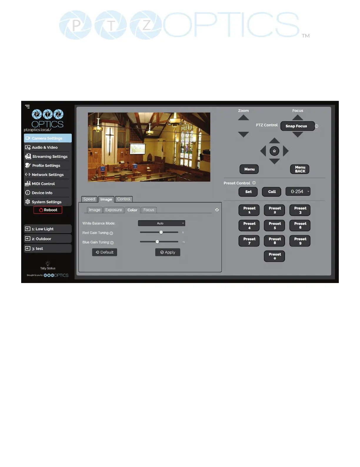 534 Trestle Place Downingtown, PA, 19335 USA · Tel: +1(484)593-2247 · Email: support@ptzoptics.com