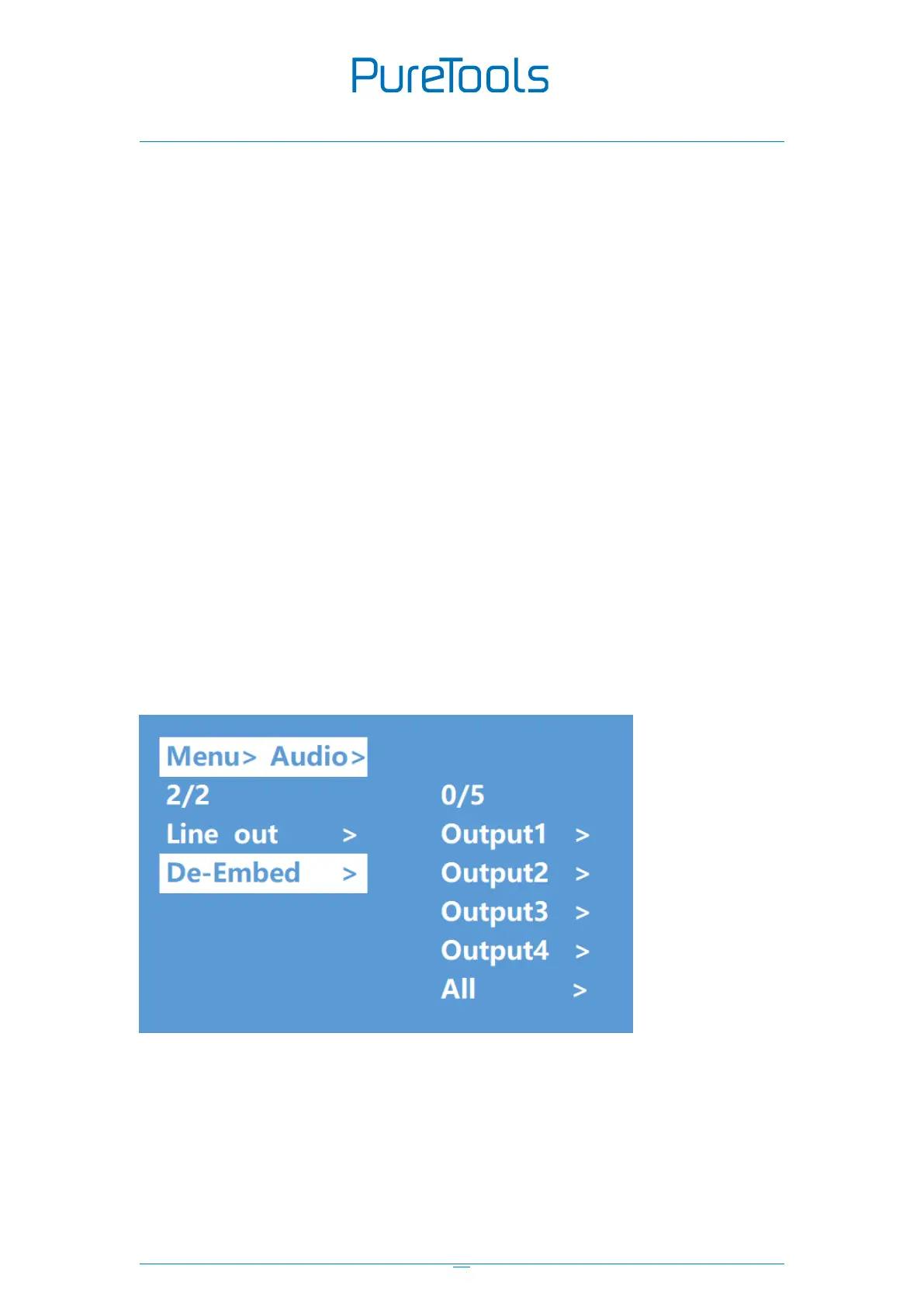-Embed” + “Output1” + “Off”, will return to upper-menu after “ENTER”