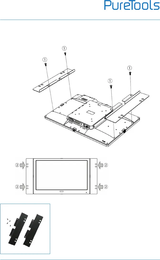Please see illustration below to x the rack mount bracket with PT-SCREEN-100.