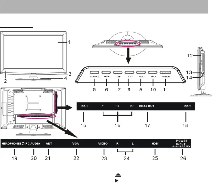21. ANT input jack- To connect the antenna.