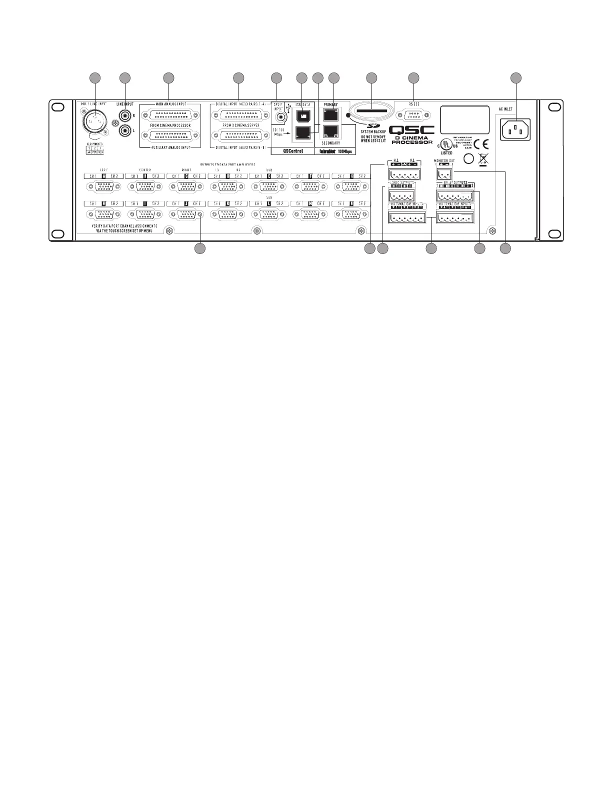 12. DataPort interface for QSC amplifi ers – supports up to fourteen single port amplifi ers