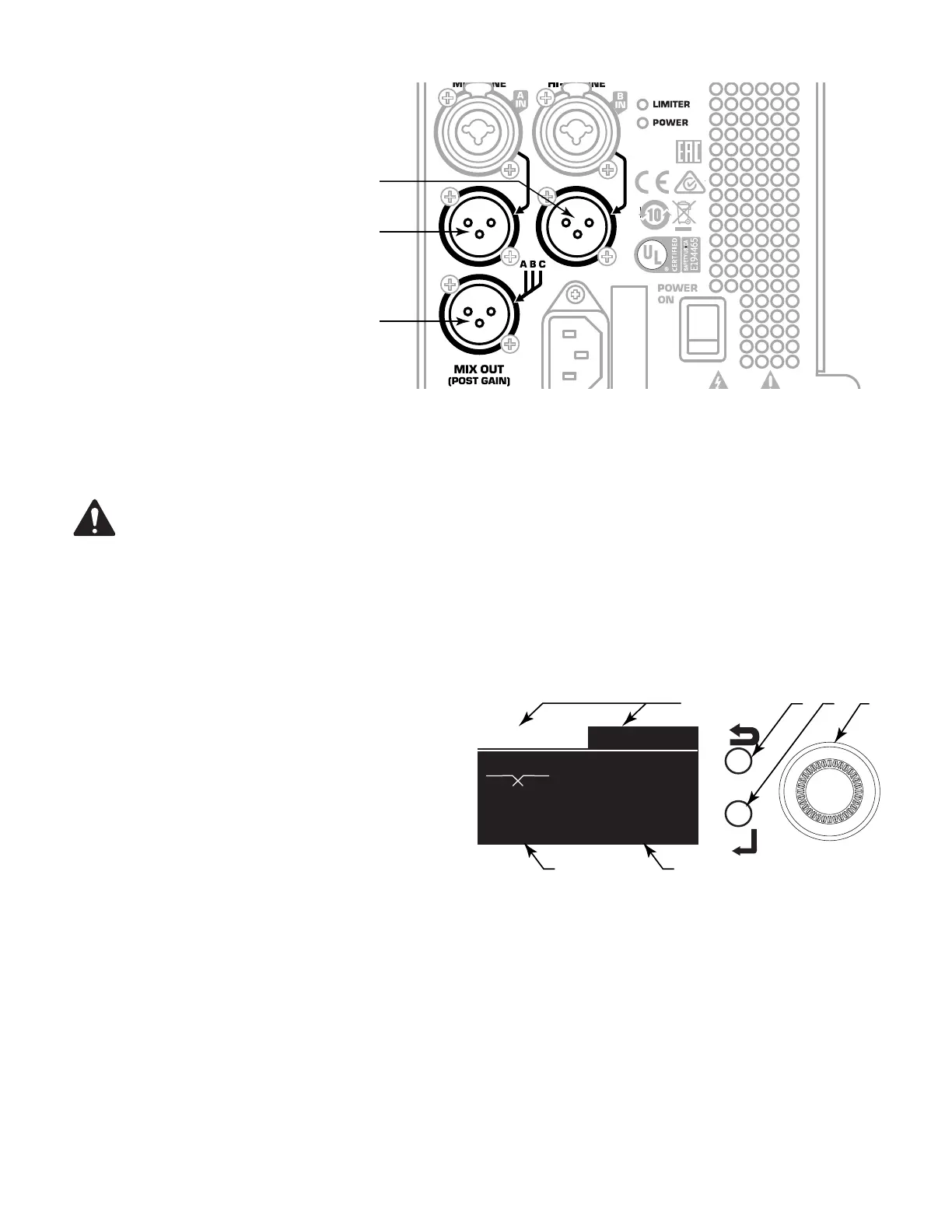 CAUTION!: Do not connect the MIX OUT (Post Gain) of a K.2 Series loudspeaker to any INPUT of the same