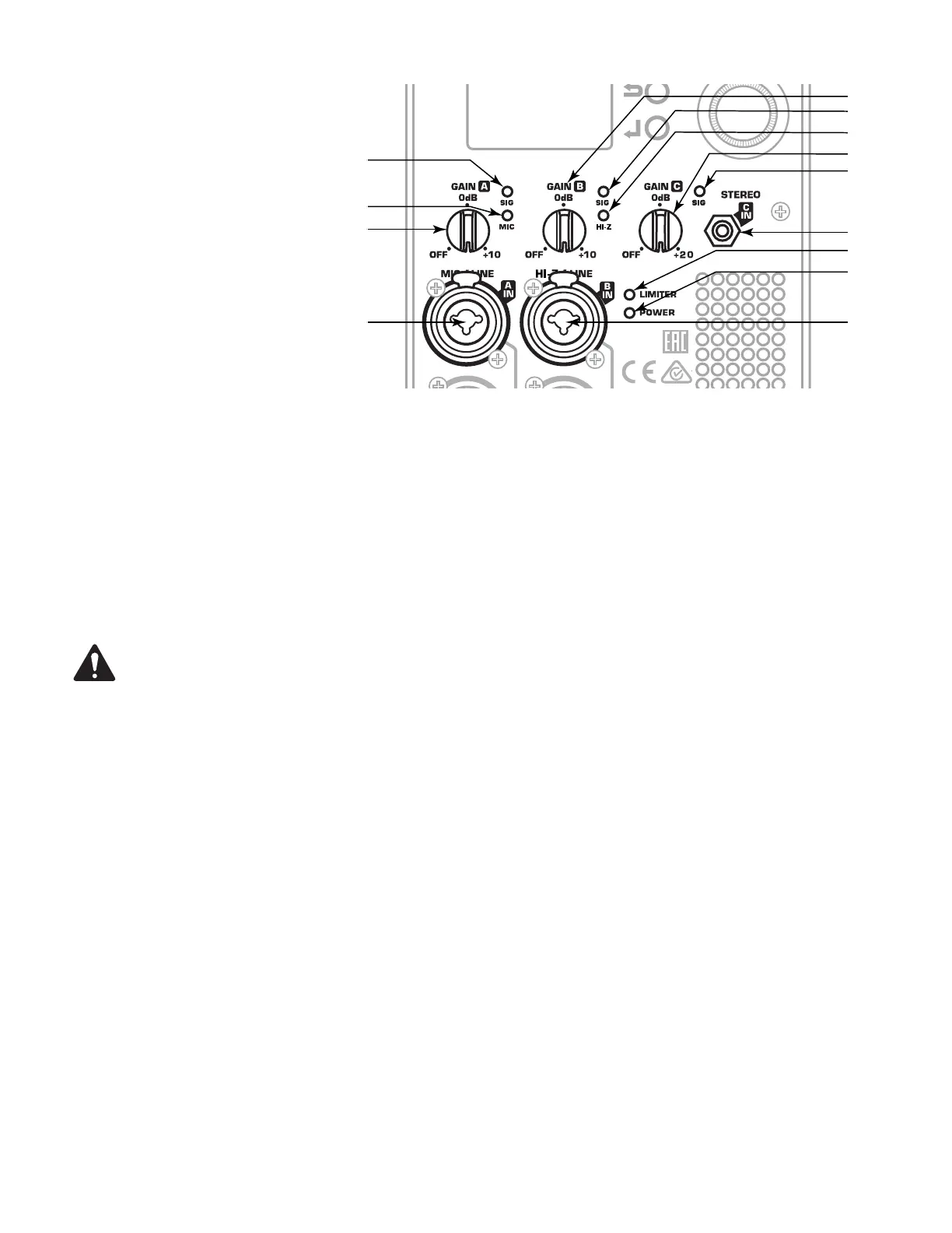 c. GAIN knob – Sets the sensitivity of Input A which controls the signal level sent to the amplifier and the MIX OUT
