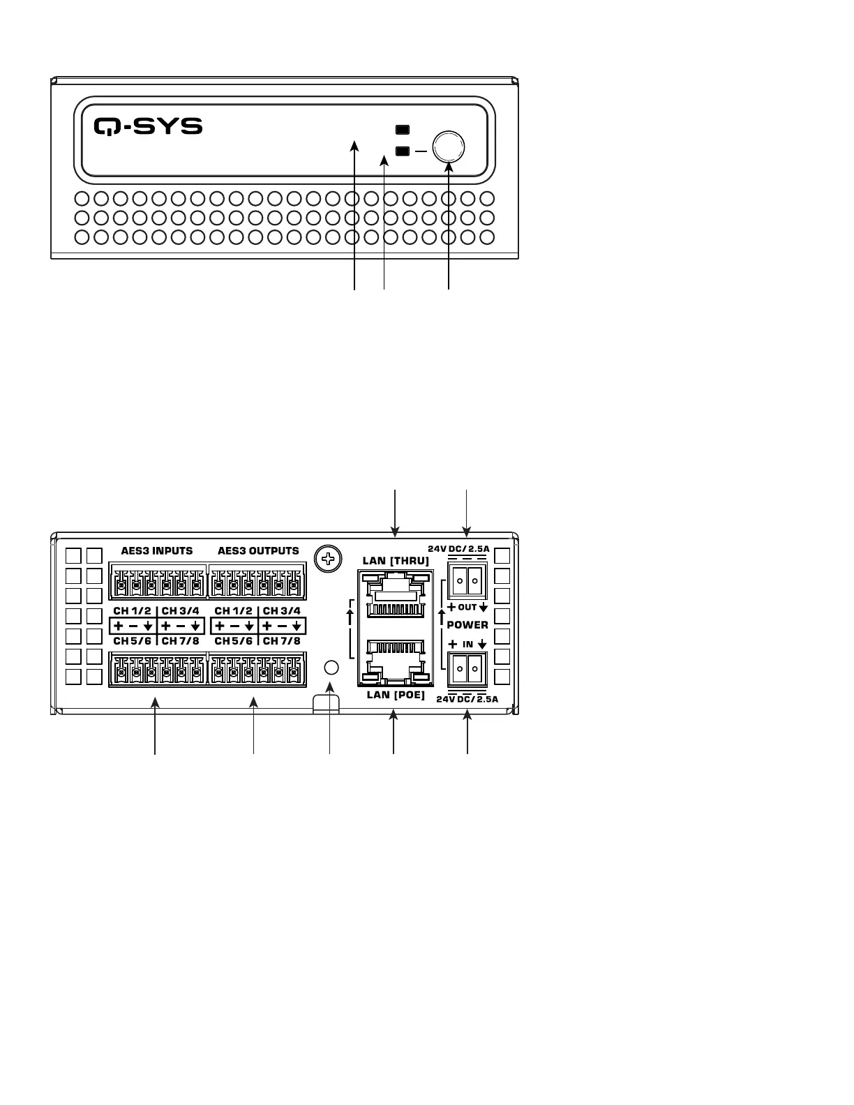 2. ID LED – LED blinks green when placed into ID Mode via ID Button or Q-SYS Configurator.