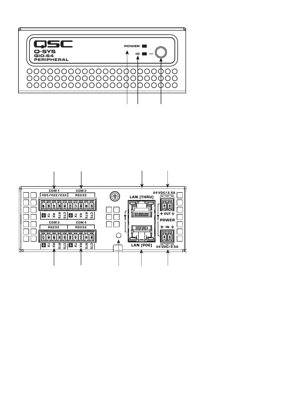 3. ID Button – Locates the QIO-S4 in Q-SYS Designer Software and Q-SYS Configurator.
