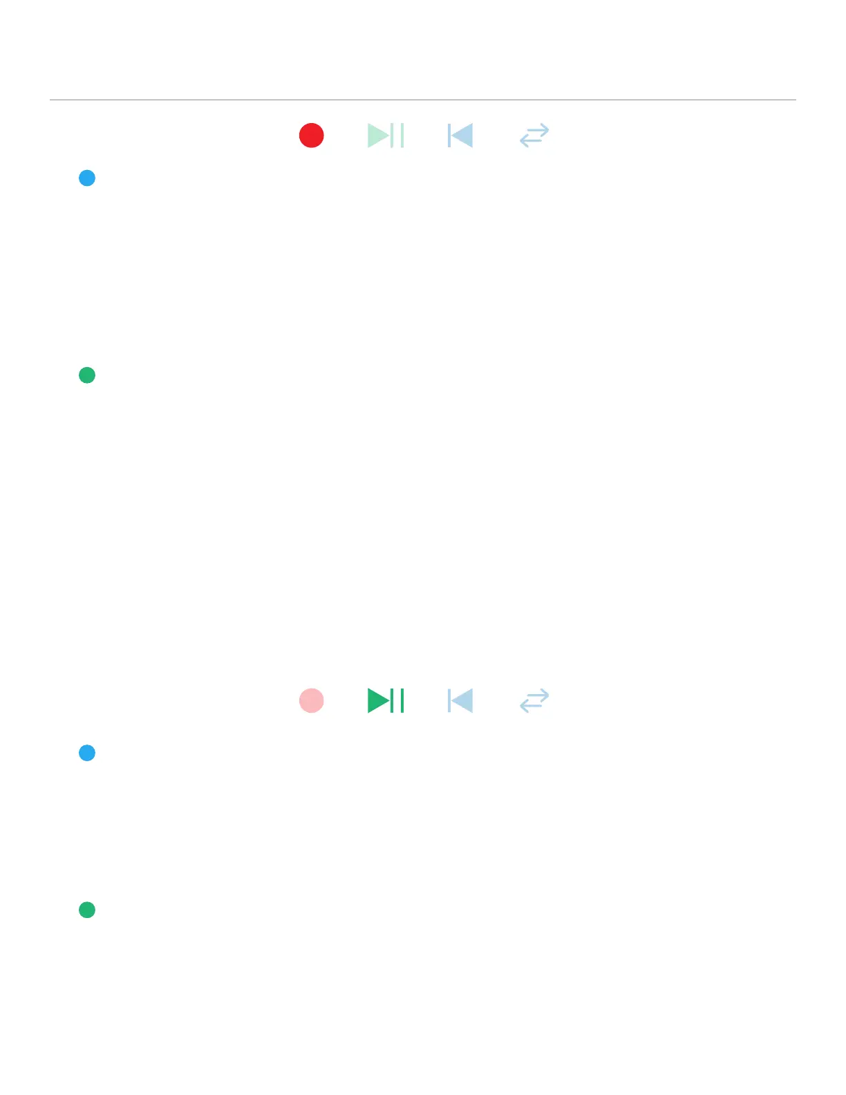 play/pause LED green. Pressing the button again will pause playback and turn the LED white,