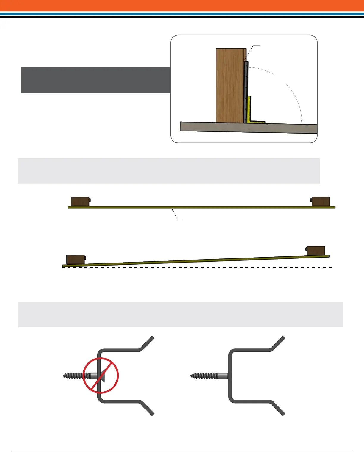 Be sure screws are ush with the inside surface of the rail leakage. Failure to do so could result in damage