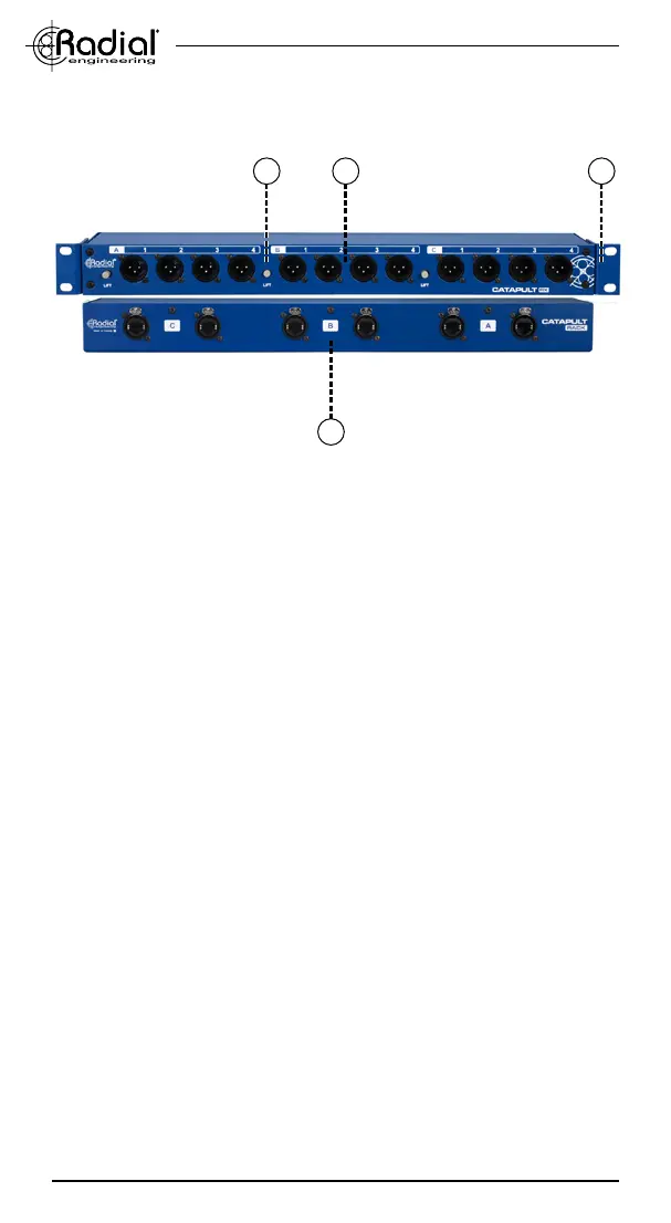 5. GROUND LIFT: Lifts pin-1 on all four of the corresponding XLR