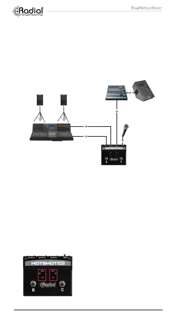and Output-B to the FOH console, and apply eects to the B channel.