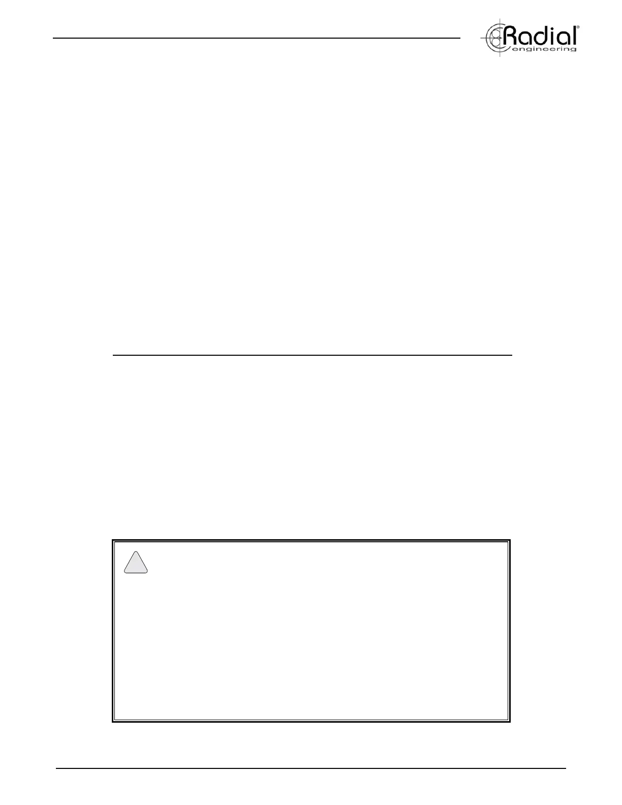 The Radial Workhorse is specically designed for use by qualied professional audio engineers. The