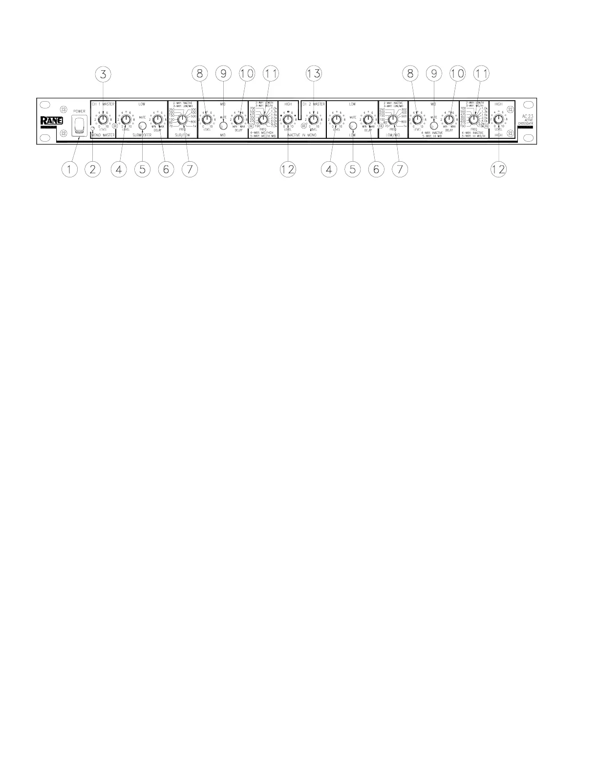 햹 MID LEVEL control: Sets the Level of signal going to the Mid Output in this Channel only.