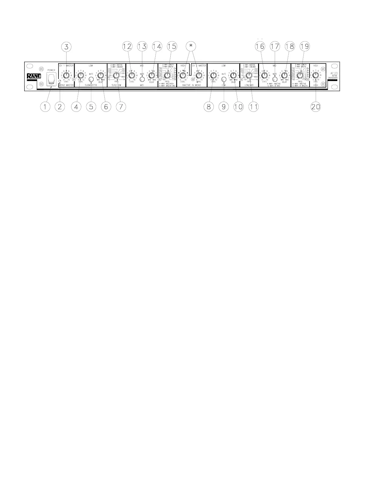 햾 MID LEVEL control: Sets the Level of signal going to the Mid Output only.
