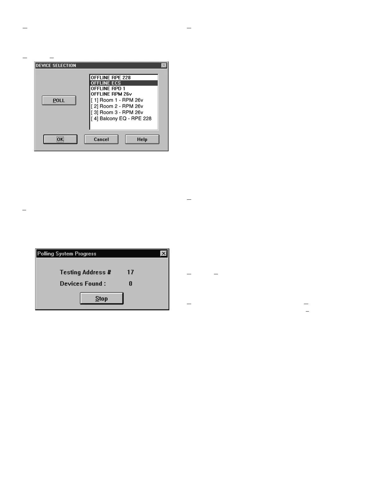 button in the Polling message box). When a device is found,