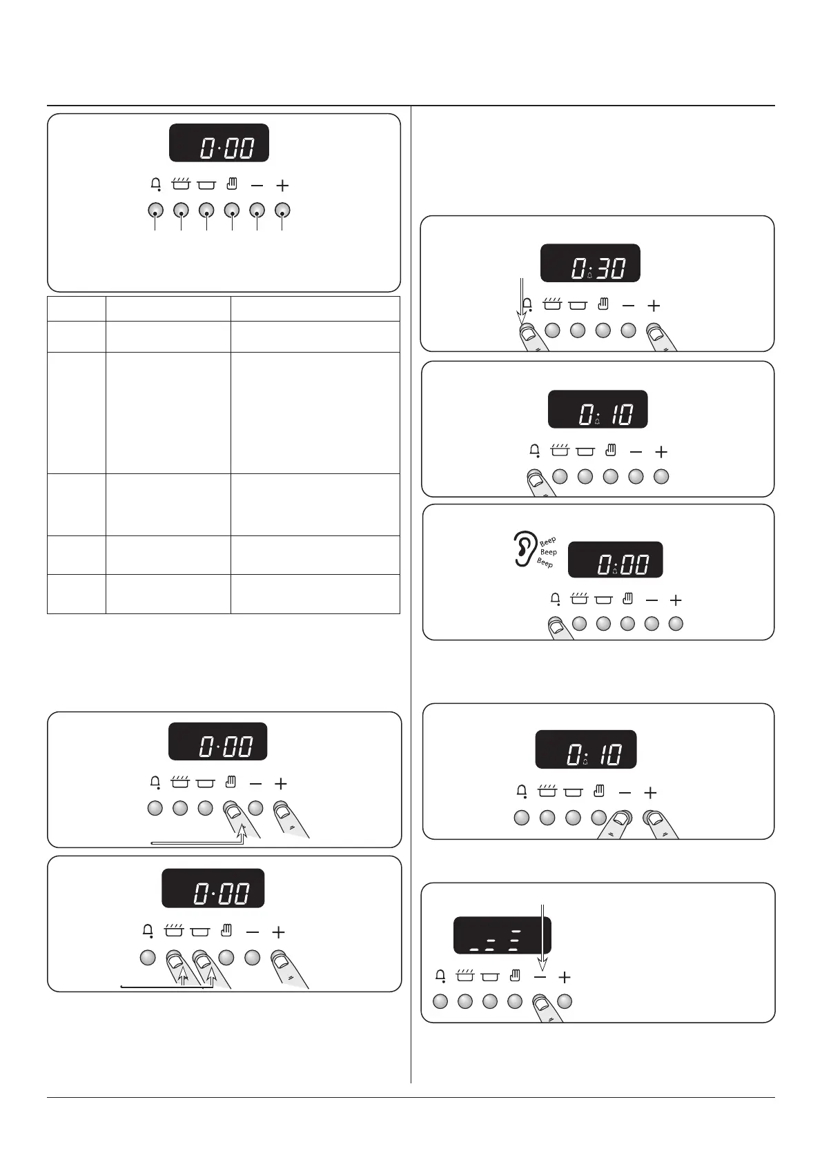 E & F – Time setting buttons