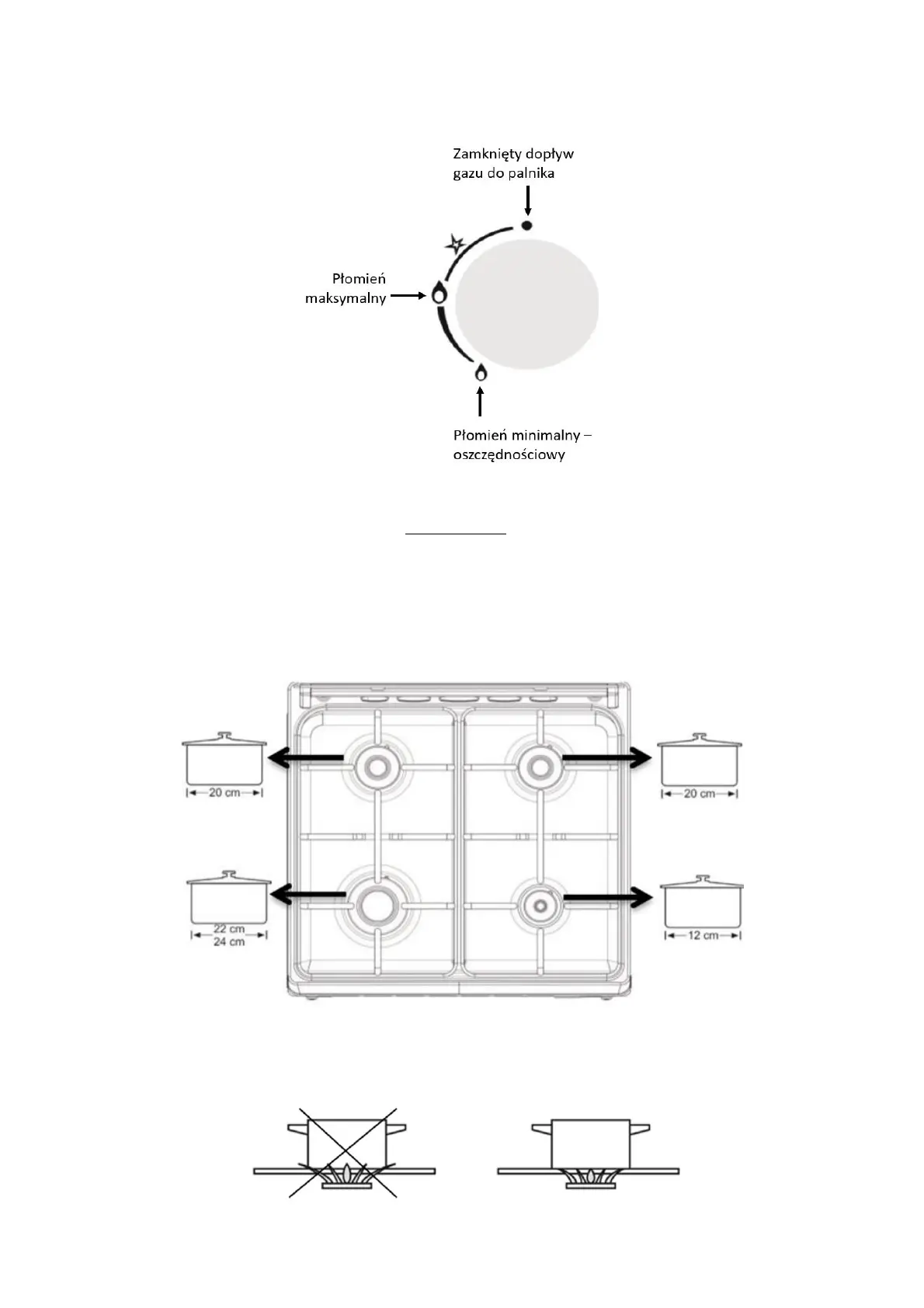 o wielkości odpowiedniej średnicy garnka używanego do gotowania. Nie należy dopuszczać, żeby płomień wychodził