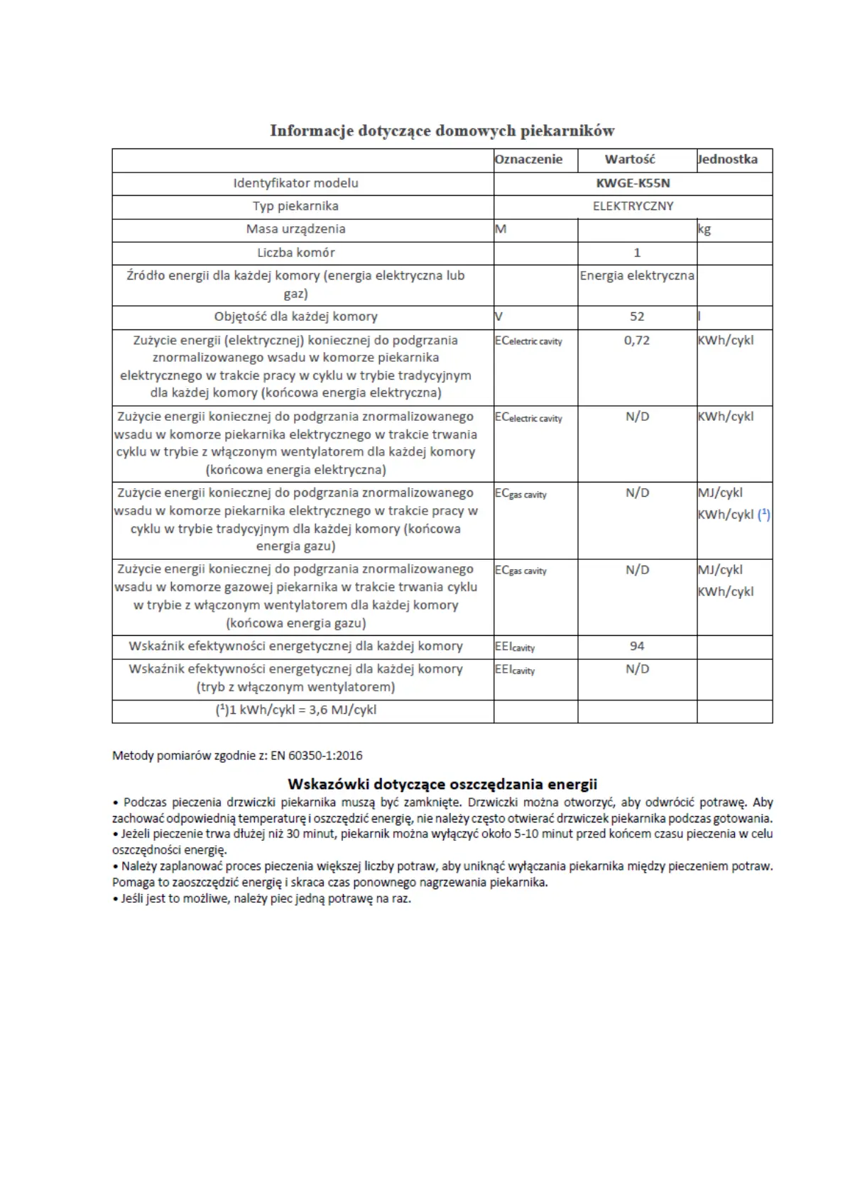 | Model | KWGE-K55N |