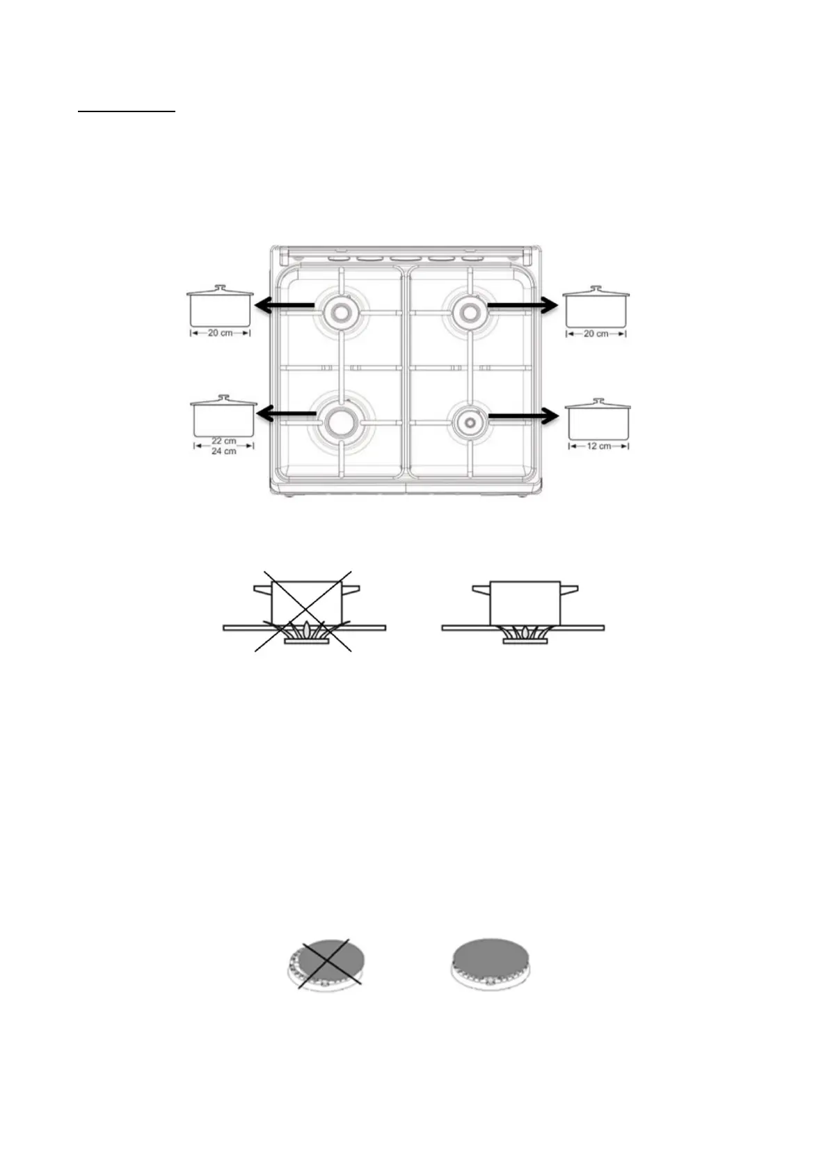 конфорки. Не знімати решітки і не ставити посуд безпосередньо на конфорки.