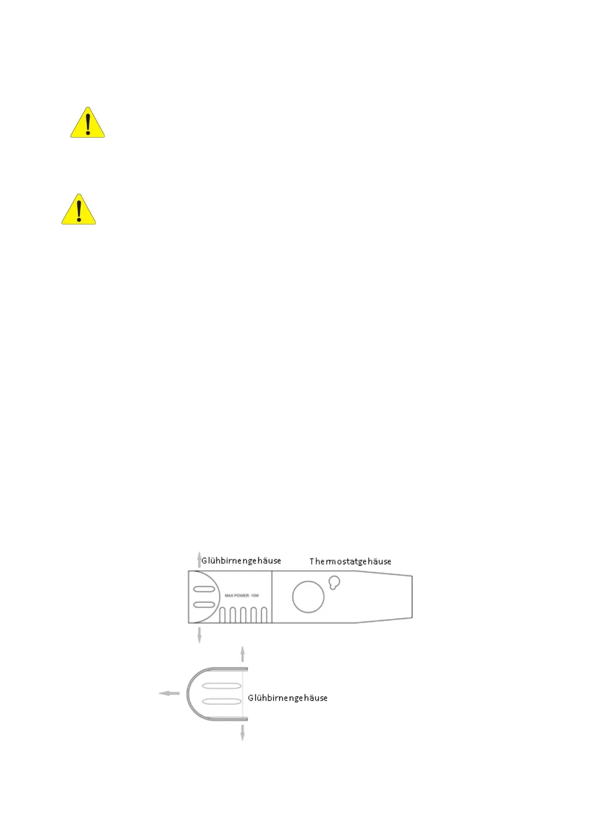 Bevor Sie die Glühbirne wechseln, stellen Sie den Knebelgriff des Thermostates auf „0“ und trennen Sie den